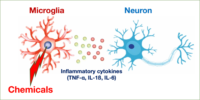 我々は多くの化学物質に常に曝されながら生活をしています。一方、生体はこれらの化学物質に対する防御機構を備えており、この機構を駆使して自らの健康を正常に保っていると考えられます。当教室では、主に化学物質による脳炎症誘導機構を解明するとともに、得られた分子機構を基盤とした新薬開発を目指しています。環境関連研究を通じてヒト健康維持に貢献する、または、企業や各種研究・開発機関で活躍することを目指す学部生・大学院生などを募集しています。