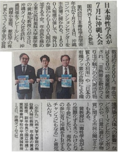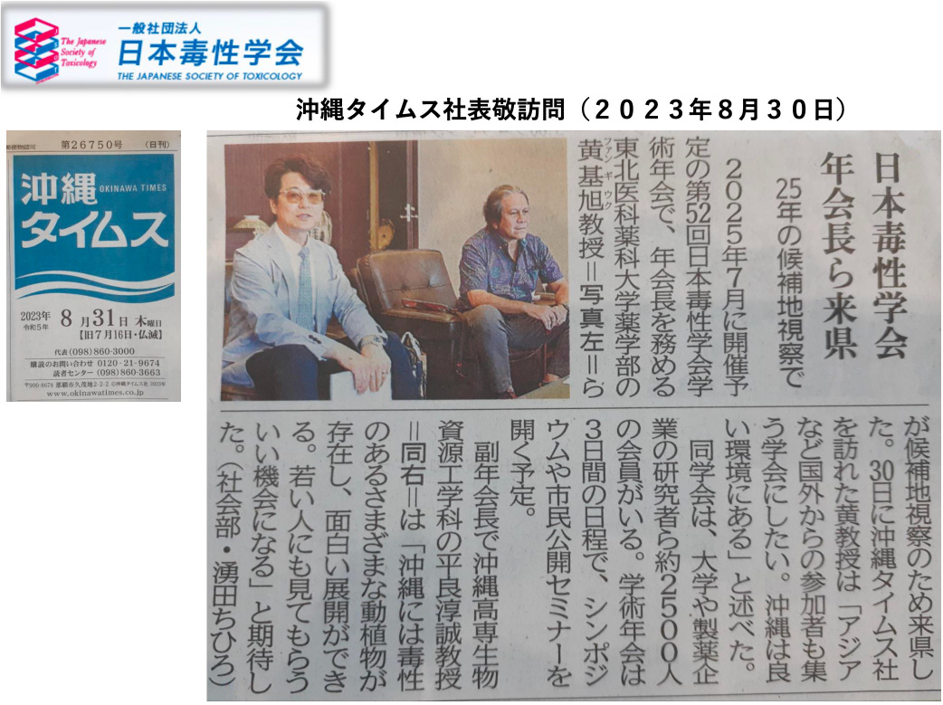 沖縄で主催する第52回日本毒性学会学術年会の宣伝のため、黄先生が沖縄タイムス社を表敬訪問しました。