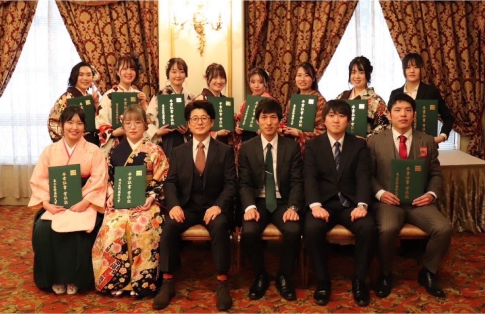 薬学部卒業証書・学位記授与式が行われ、大学主催の卒業パーティーと研究室での送別会を開催しました。