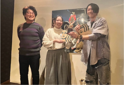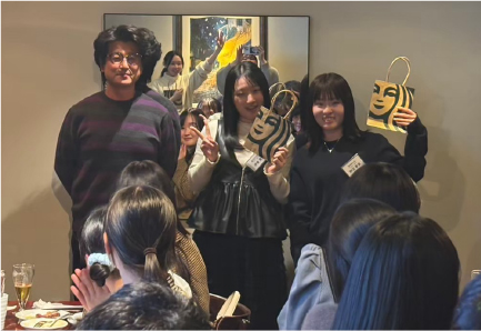 ボウリング大会の優勝ペア (山下&熊谷ペア) とクイズ大会の優勝者 (伊東さん、栁沼さん) には黄先生から素敵なプレゼントが手渡されました。